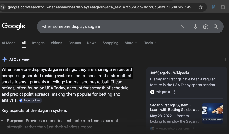 Defined - When someone displays Sagarin ratings, they are sharing a respected computer-generated ranking system used to measure the strength of sports teams—primarily in college football and basketball.